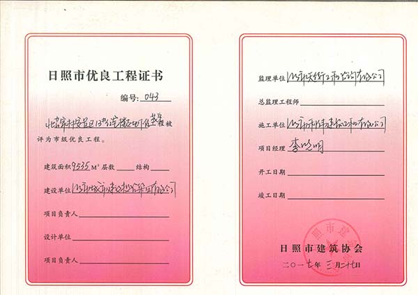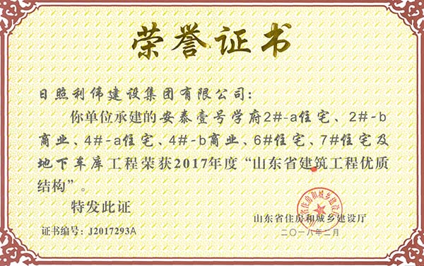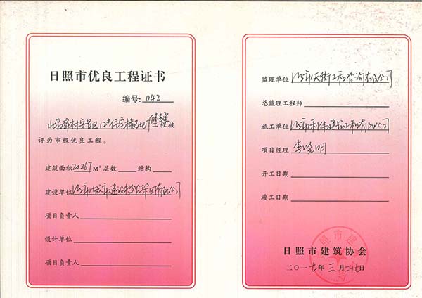 2017年北苗地下车库 市优良工程.