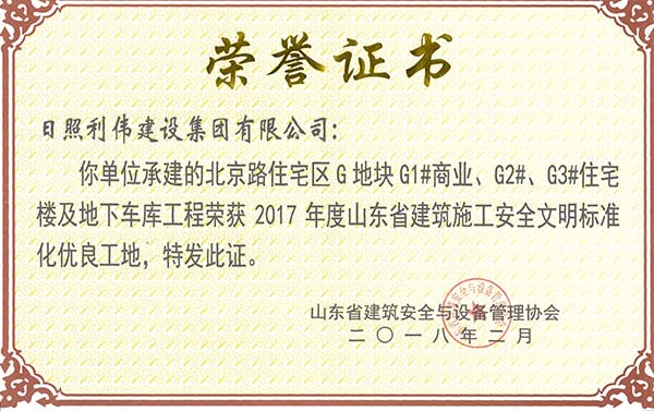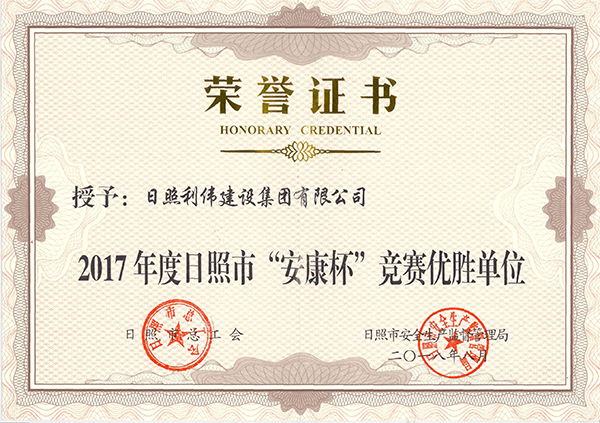 2017年日照市“安康杯”竞赛优胜单