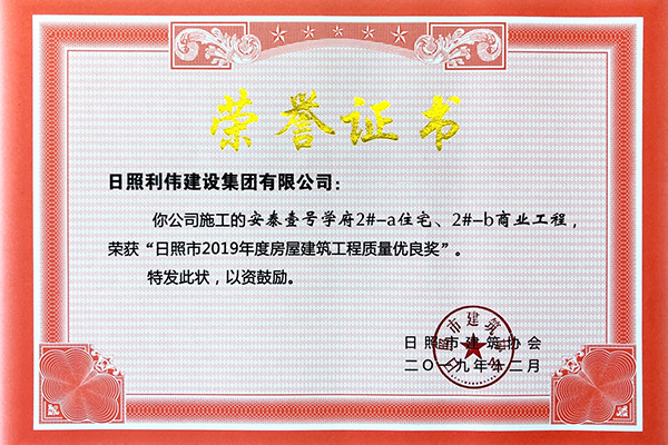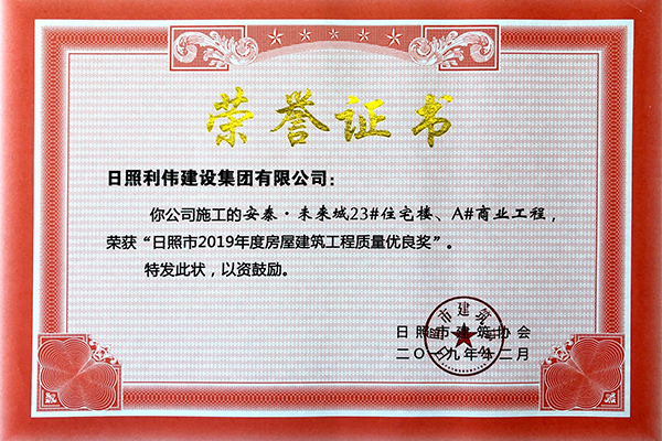 房屋建筑工程质量优良奖