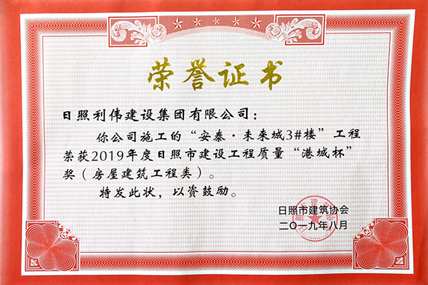 2019年度荣获日照市建设工程质量“