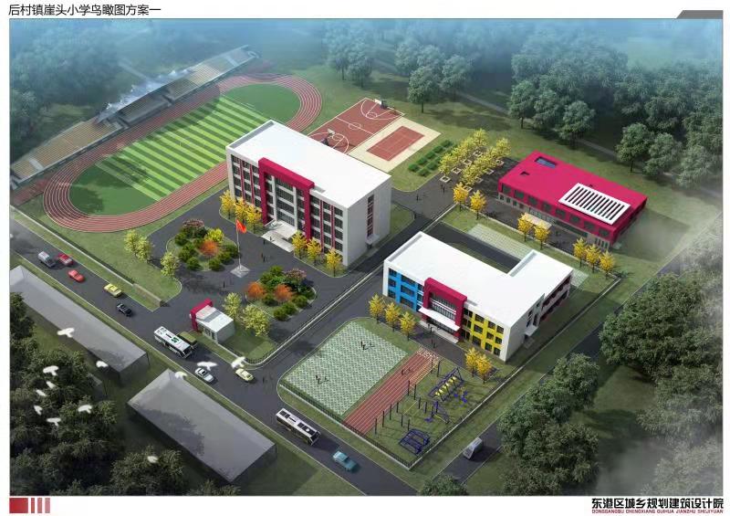日照市东港区后村镇崖头小学位于后村镇崖头村 613 省道以南、222省道以东,总建筑面积为 7167.4 平方米,将建设综合教学楼、风雨操场、餐厅、停车场等设施。