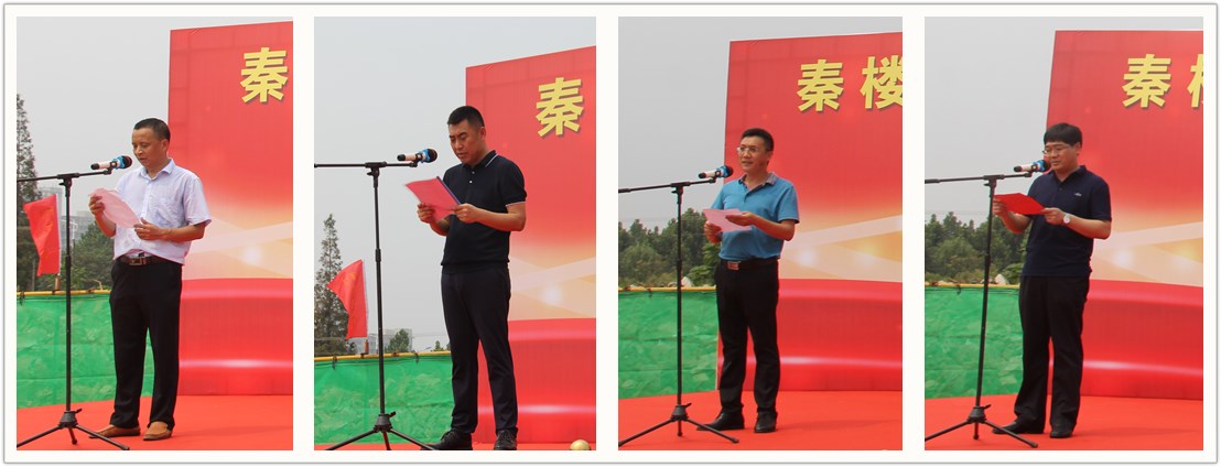 ▼前官庄村党支部书记秦泗安、利伟集团董事长费伟、秦楼街道副书记宋磊、新东港控股党委书记徐东波分别致辞