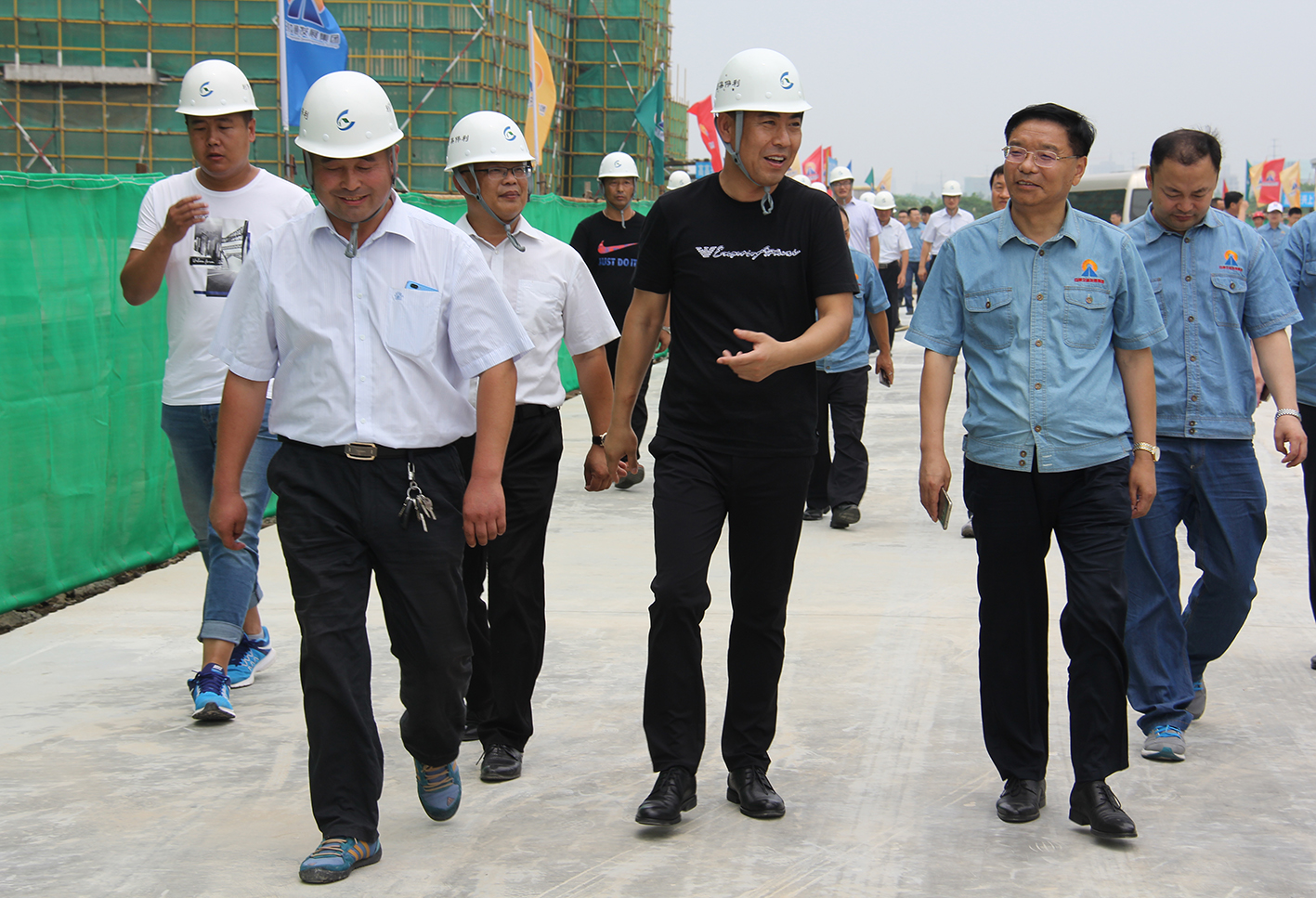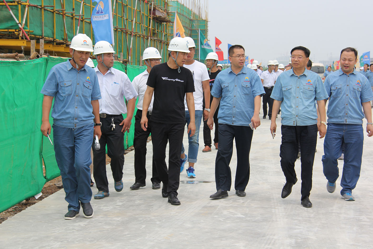 金董事长充分肯定了利伟集团施工标准化水平,对现场文明施工标识高度赞扬,同时,还要求在确保工程实体质量的前提下,要加快施工进度,保证项目按期交付使用。